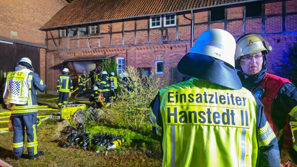 Erst sind mehrere Sirenen zu hören, dann dumpfe Rufe und das durchdringende Piepen mehrerer Rauchmelder. Sie hallen am Montagabend gegen 19:30 Uhr durch den Ortskern von Hanstedt II, einem Ortsteil der Hansestadt Uelzen. Dichte Rauchschwaden ziehen aus den Fenstern und unter dem in die Jahre gekommenen Altbaudach eines Wohn- und Wirtschaftsgebäudes im Hanstedter Ring hervor. Während wenige