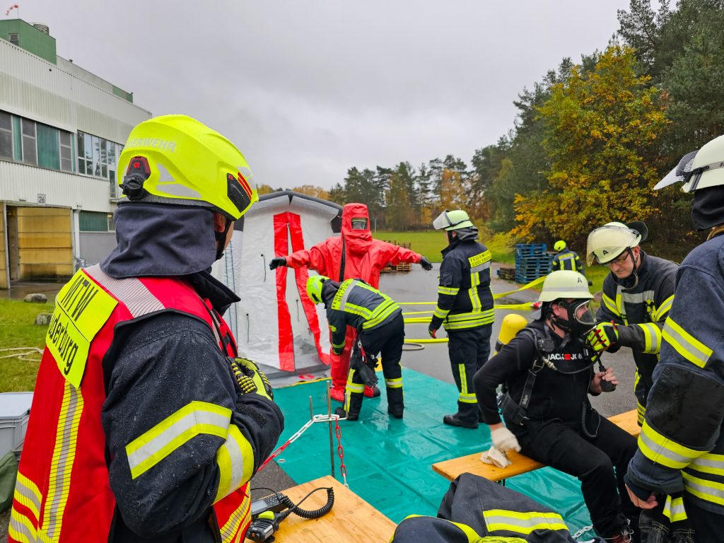(Uelzen, 11. November 2023). Am heutigen Samstag wurden die Einsatzkräfte der Feuerwehren Uelzen und Oldenstadt zusammen mit dem Gefahrgutzug Mitte um 09:48 Uhr mit dem Stichwort ABC2 – Ammoniakaustritt in die Hamburger Straße in Uelzen alarmiert. Zudiesem Zeitpunkt war den meisten Einsatzkräften noch nicht bewusst, dass es sich bei diesem Einsatz um eine Übung handelte.