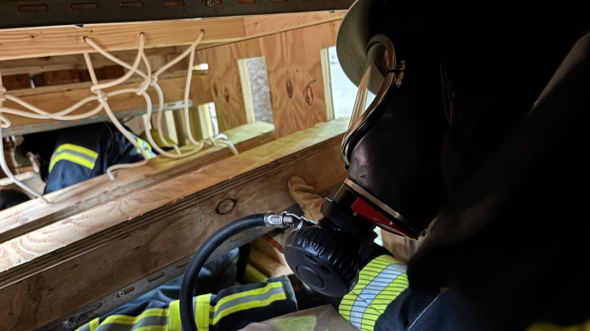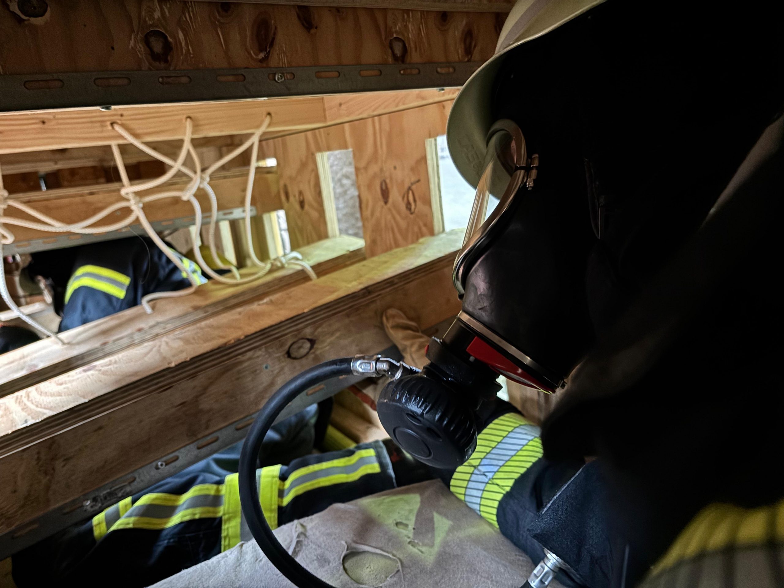 Hierbei durchlaufen die Teilnehmer eine selbstgebaute Atemschutz-Übungsstrecke auf einer Länge von ca. 50m in bis zu drei Ebenen. In dieser Übungsstrecke sind verschiedenste Hindernisse verbaut, welche in der Vergangenheit weltweit zu schweren Atemschutznotfällen geführt haben.