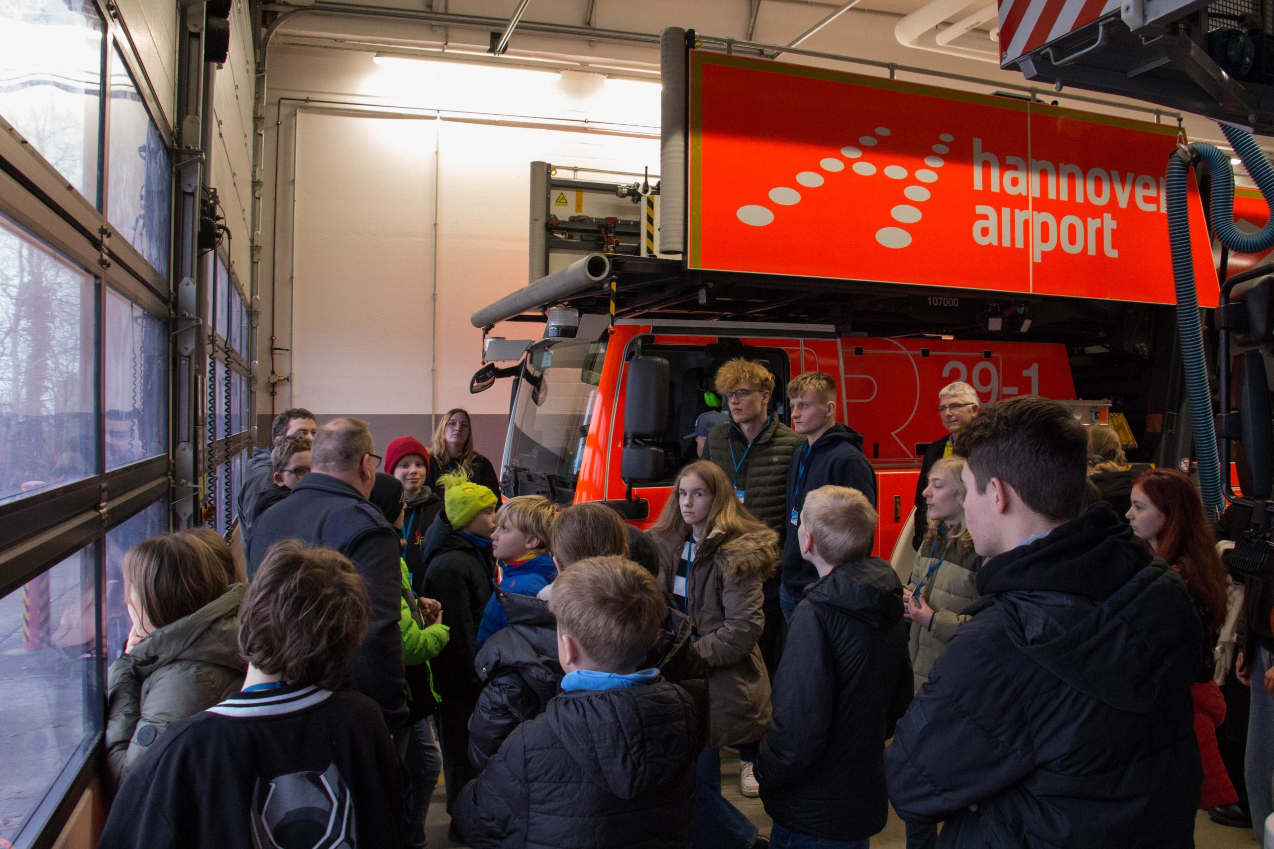 Während der Führung wurden die modernen Einsatzfahrzeuge, darunter die leistungsstarken Flugfeldlöschfahrzeuge, vorgestellt. Die Kinder und Jugendlichen konnten einen Blick in die Fahrzeugtechnik werfen und erfuhren, wie im Ernstfall große Mengen Wasser und Löschschaum in kürzester Zeit zum Einsatz kommen. Außerdem wurde die Feuerwache besichtigt, in der sich die hauptberuflichen Feuerwehrkräfte rund um die Uhr einsatzbereit halten.