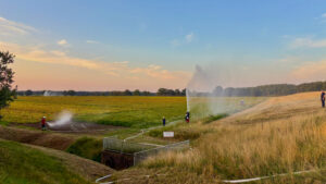 In Höhe der Brücke in Richtung Uelzen am nahegelegenen Drachenberg erfolgte die Wasserentnahme direkt aus dem Elbe-Seitenkanal. Auf einem dort gegenüberliegenden Feld wurde ebenfalls die Vegetationsbrandbekämpfung geübt.